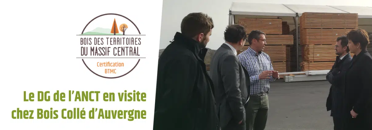 Le 15 mars dernier, Monsieur Yves LEBRETON, directeur général de l’Agence Nationale de la Cohésion des Territoires, se rendait au Commissariat du Massif central. Accompagné notamment de la directrice déléguée aux territoires, Madame Simone SAILLANT, ils ont pu rencontrer les acteurs locaux impliqués dans les programmes de l’ANCT. C’est au sein de l’entreprise certifiée Bois Collé d’Auvergne, située au cœur du Puy-de-Dôme, que la démarche Bois des Territoires du Massif central a été présentée aux représentants de l’ANCT. L’ANCT accompagne notre association, dans l’objectif de développer l’utilisation du bois local et durable dans la construction.