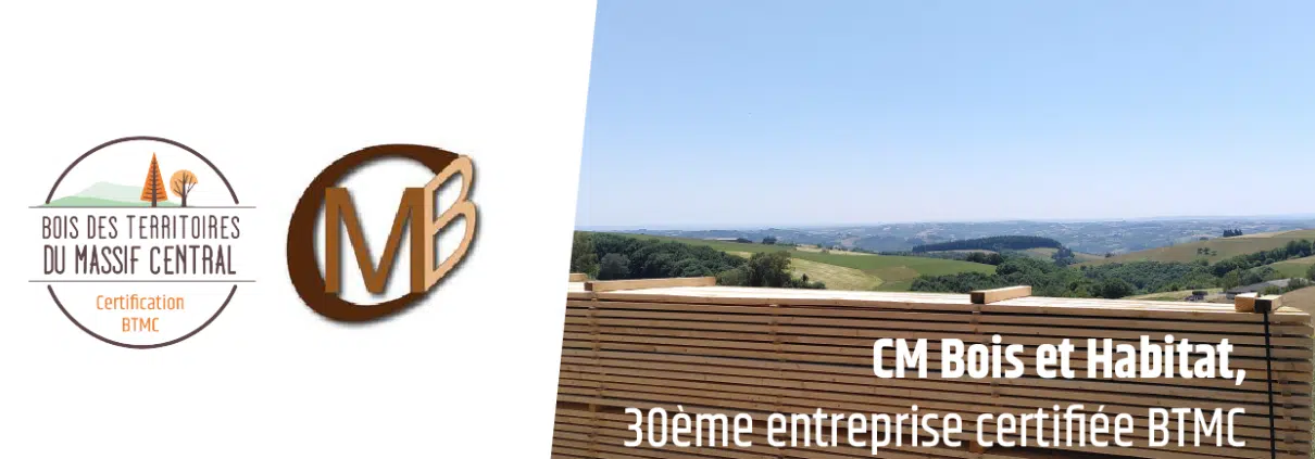 L’entreprise aveyronnaise CM Bois et Habitat est désormais certifiée BTMC ! Elle devient la 30ème société à rejoindre la démarche de certification Bois des Territoires du Massif central, et la première à nous rejoindre en cette nouvelle année.