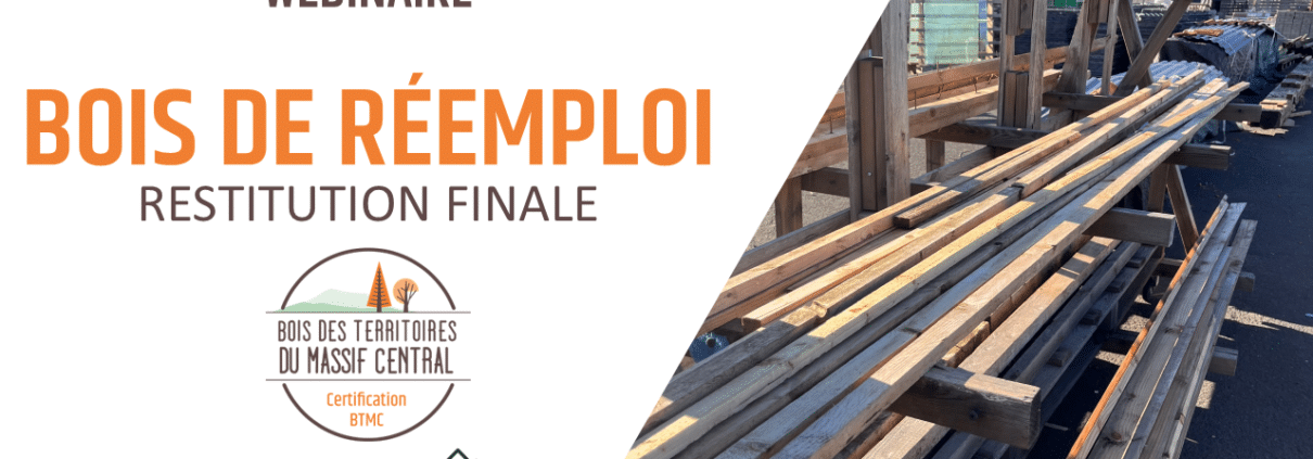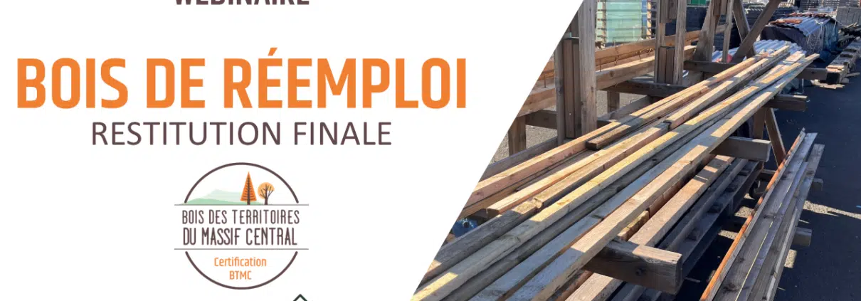 Le 4 décembre, Bois des Territoires du Massif central a organisé un webinaire de restitution du projet Bois de réemploi, mené sur une année complète, en partenariat avec Métabatik et financé par Agence nationale de la cohésion des territoires.